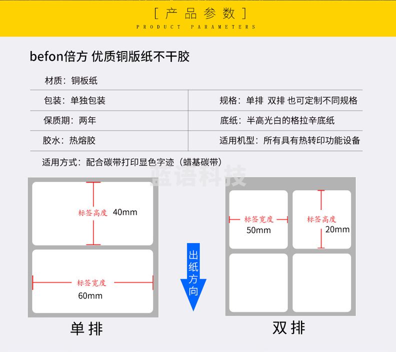 铜板条码标签 50*30*3000枚 双排 圆角打印定做铜板纸吊牌彩色印刷贴纸服装条码纸