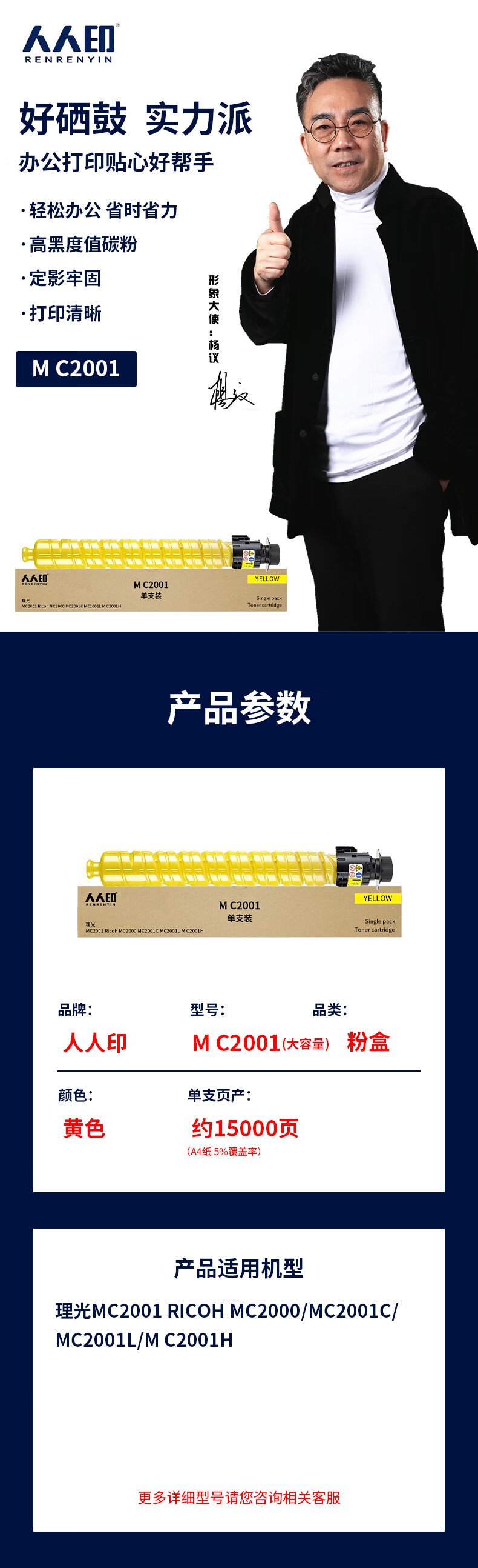 人人印 M C2001 黑色彩色粉盒 适用理光RICOH M C2001ew墨粉盒打印机硒鼓粉盒墨盒C2001 MC2001