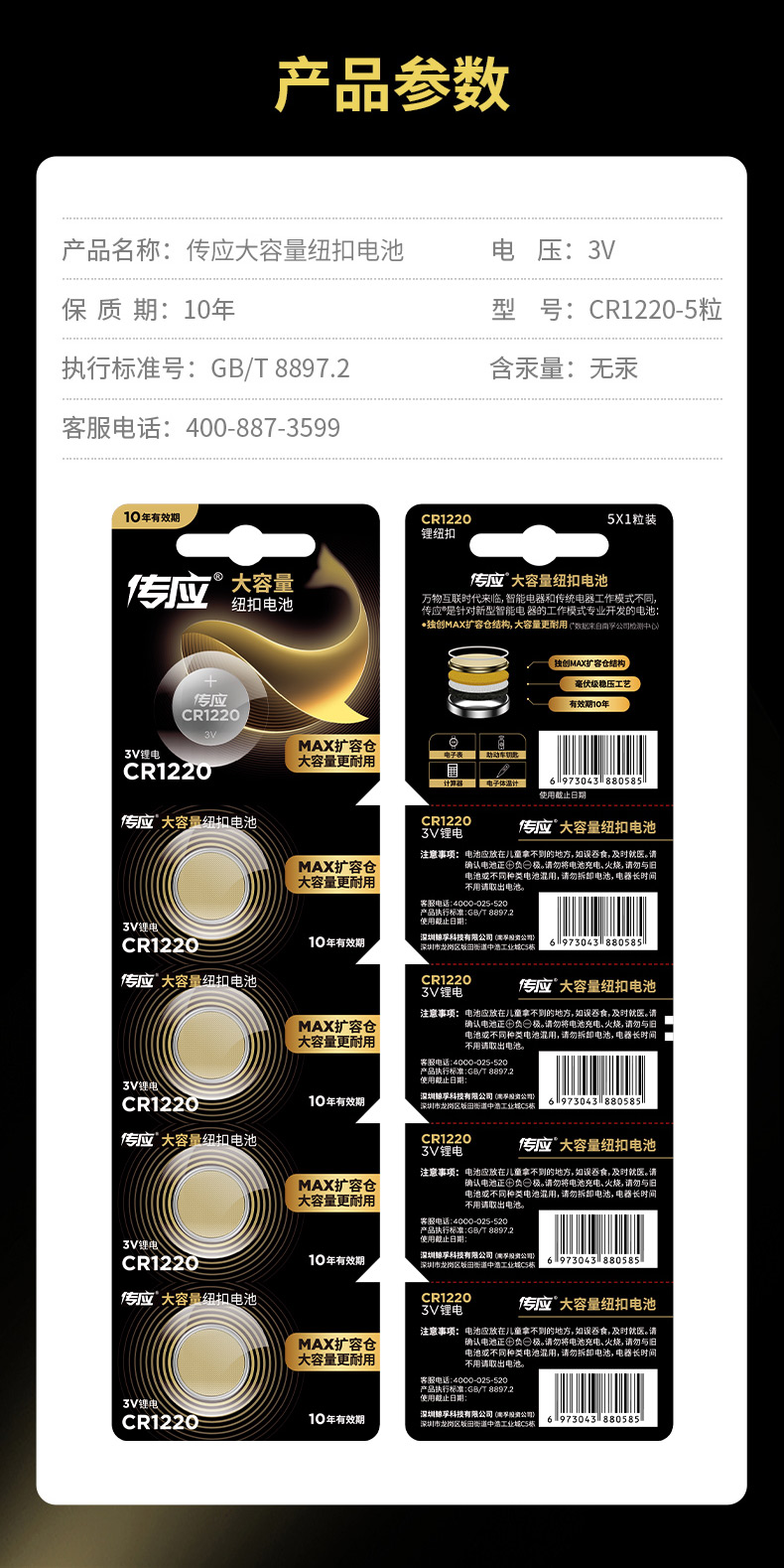 南孚传应(NECTIUM) CR1220纽扣电池1粒 3V锂电池